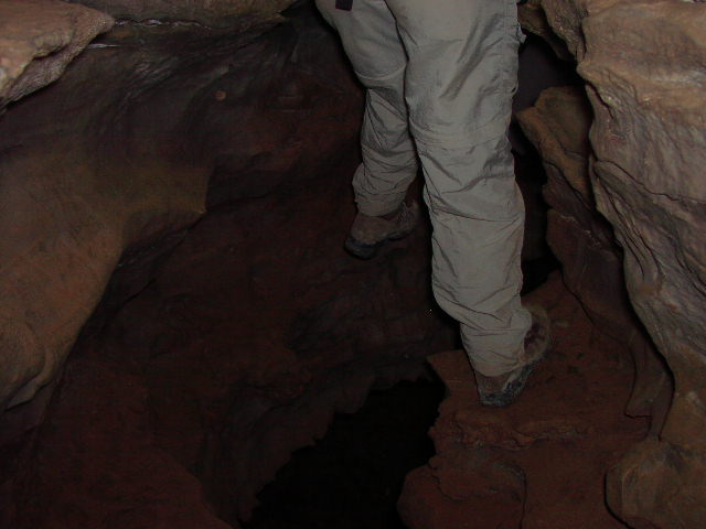 途中、足元がポッカリ抜けていて底を頭のサーチライトで照らしても底が見えないような場所を歩いていかなければなりません。これ、かなり危ない場所です。 |