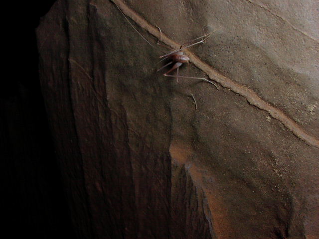 暗黒の世界に住むコウロギがいました。何とも怖い。 |
