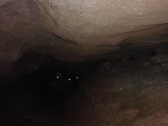 通路は多くは岩石で囲まれていて結構広いんです。頭にかぶったヘルメットのサーチライトがなければ真っ暗でとても歩けない状況です。真っ暗で通路に電気とかは一切ありません。 |