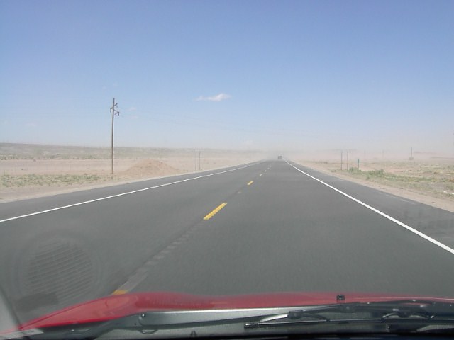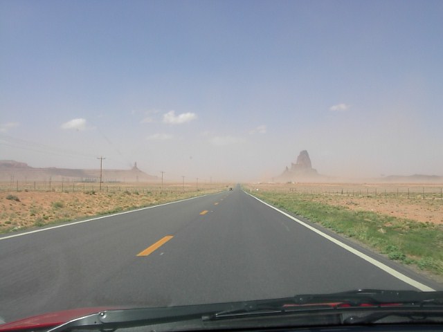 グランドキャニオンからモニュメントバレーに向かいます。距離にしてドライブ3時間。そこは簡単に言うと砂漠です。ですが平素その砂漠なるものを実感したことのない自分のような人間にとってそこはやはり異空間です。 |
