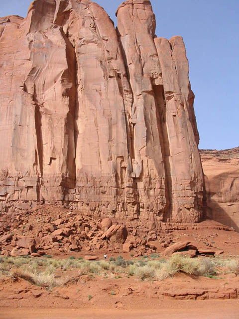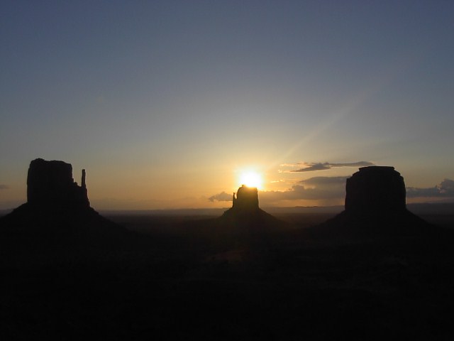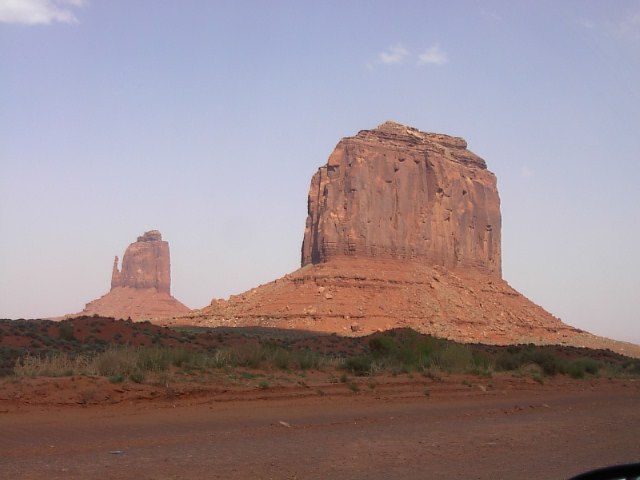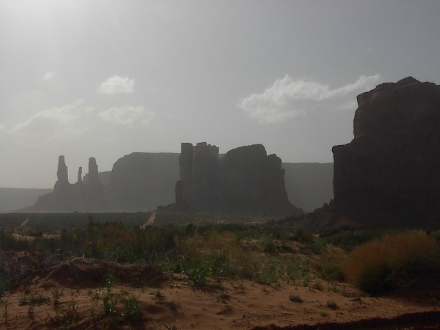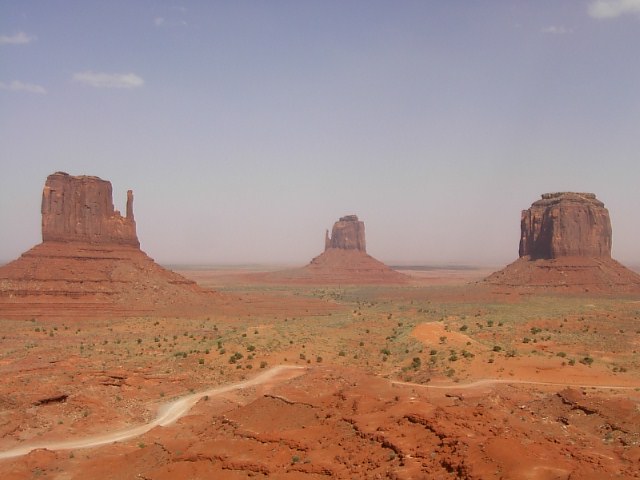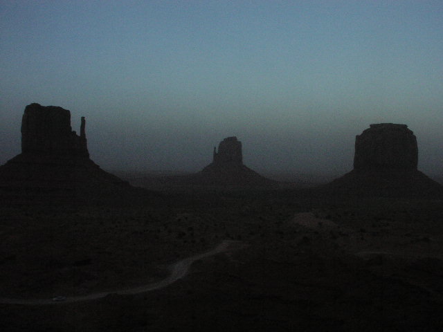 遂にココまできたか... そう思ったもんです。この3つのビュートはナバホの人々にとって精神的支えとなってきたのです。チョイト立ち寄った自分でも、このモニュメントバレーには流石に畏敬の念を抱きました。 |