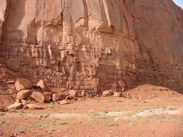 超巨石の例です。左の写真には私自身が写っているのですが分かりますか?蟻以下の存在といっていいでしょう。笑。相手がでかすぎて上手く説明できません。写真に写ろうと一生懸命、走っても走ってもなかなか岩まで行きつけないのです。 |