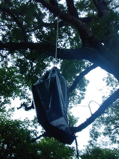 ひとつめは写真の木にぶら下がっている黒い袋です。 |