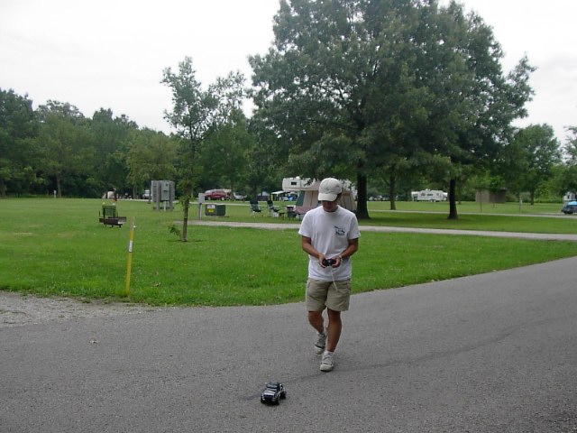 リモコンが5mくらいしか届かないので写真のようにラジコンの車と同時に自分も移動しなければなりませんでした。ハッキリ言ってラジコンを自分が操っている状態ではなくて、ラジコンに自分が操られている惨めな状態でした。笑。いや、でも完全に童心に戻れました。