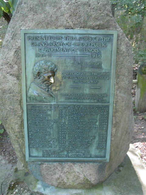 公園には南北戦争当時のちょっとしたmonumentがありました。北部同盟軍の司令官リンカーンが彫ってあります。だれもが彼にあやかりたいのでしょう、鼻はみんな触っていくのでピカピカです。 |