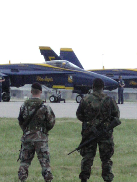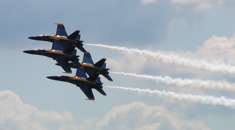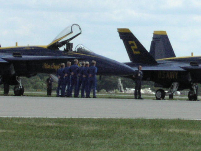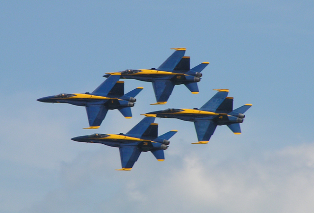 このBlue Angeles実に素晴らしい飛行を披露しました。目の前通り過ぎてしばらくしてから飛行音が『ゴオオオオオーーーーン』と爆音で聞こえてくるのは、実際に超音速で飛んでいることを感じさせてくれました。こんな距離でよく飛行できるもんだ。解ってはいても凄いUS