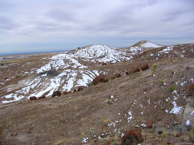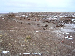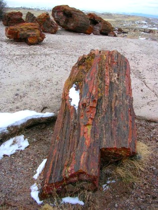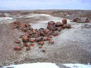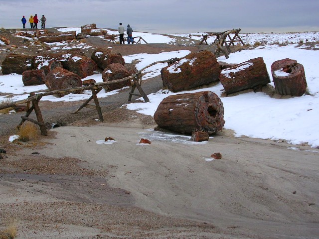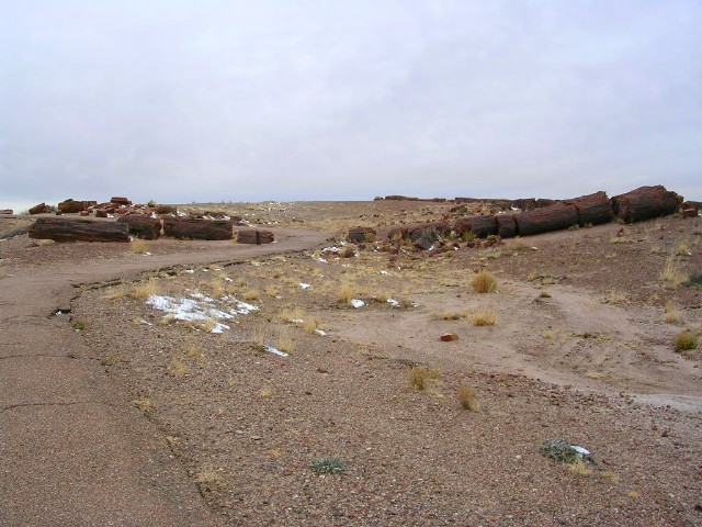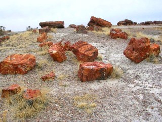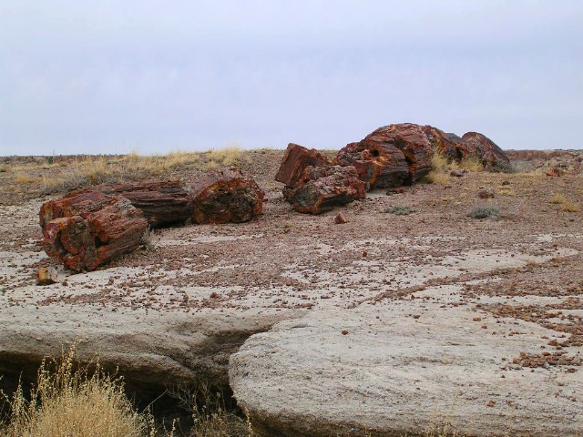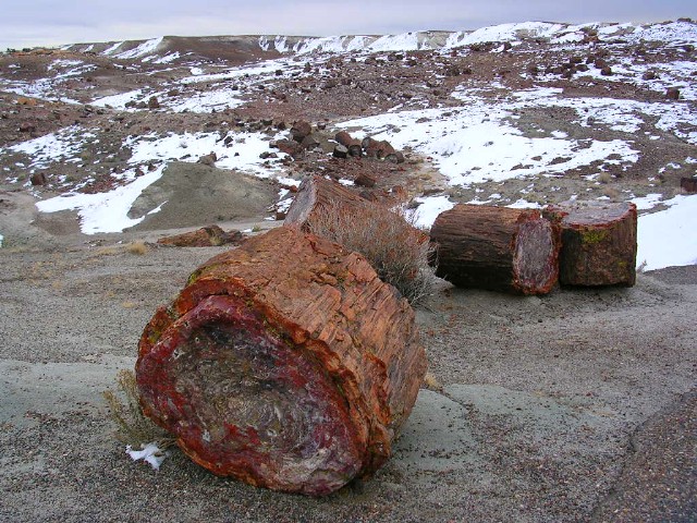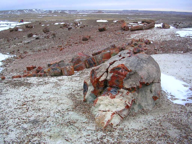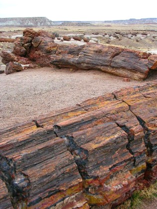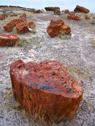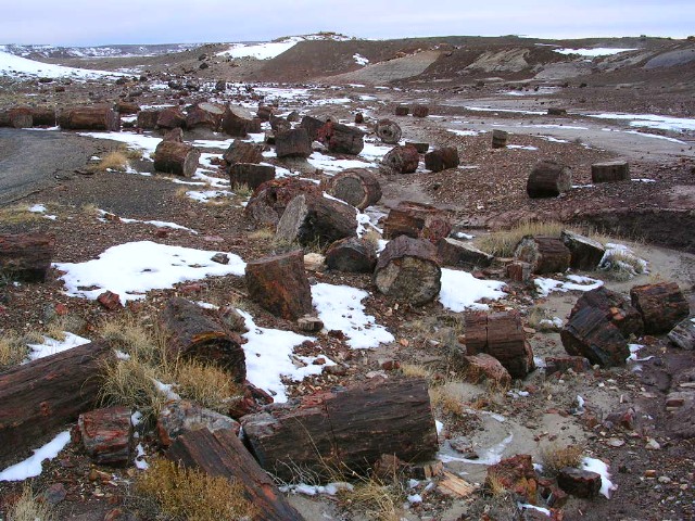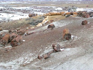 木の化石はアメリカではこの場所のみならず色んな場所で見つかっているそうですが、ここの化石群の集積は圧倒的に数が多く巨大です。 |
