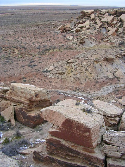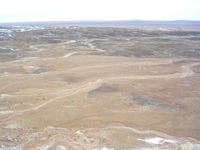 無限に広がっています。水さえあればBackcountryとしてやっていけますが、水のない砂漠なこの場所ではどうしようもありません。水がないと動物はおろか、植物も生きていけないのです。結果、このとおり何にもない剥き出しの大地だけな訳です。川の流れた跡もありますが、一年の殆どが水なしの状態。時に雨が降れば、水を保持する力のない剥き出しの大地には無数の鉄砲水が生じます。 |
