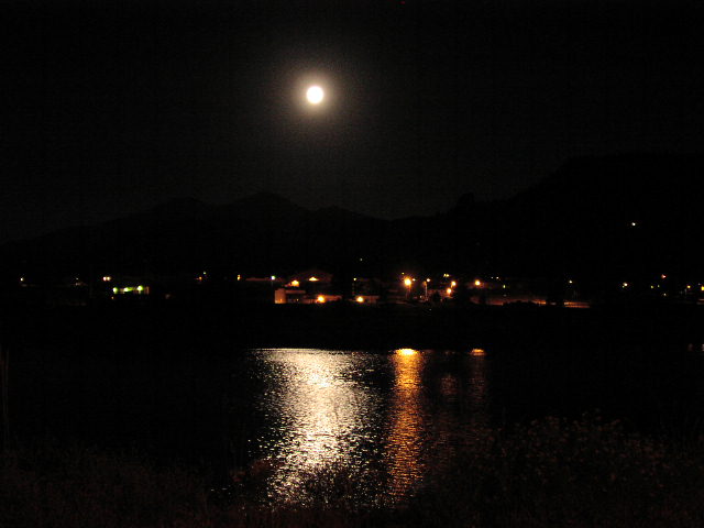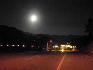 ガソリン給油以外では一回も休まずに13時間。ロッキーに到着しました。今日は満月です。 |