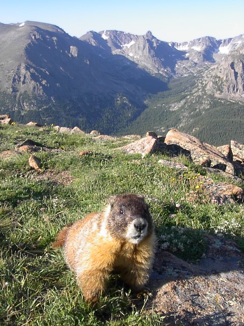 今度は、絶景を呑気に楽しんでいるのか?可愛らしいマーモットがいました。純然たる野性です。一匹だけでしたが、こいつがかなりPhotogenic!モコモコと辺りを徘徊していました。 |