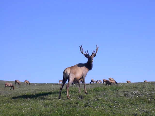 なんと、エルクの大群がここで生活していました。さすがにこんな高い場所までは熊はこないので安全なのでしょう。 |