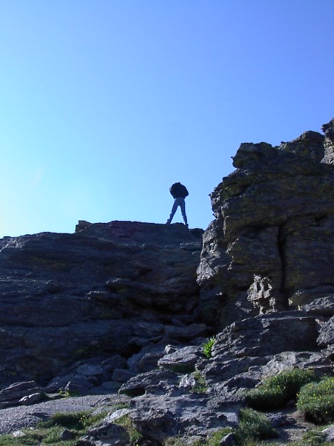 トレイル歩いた先には見晴らしのよい20mくらいの高さの岩がアッチコッチにありました。いかにもロッキーって感じです。いくつか上ってみました。 |