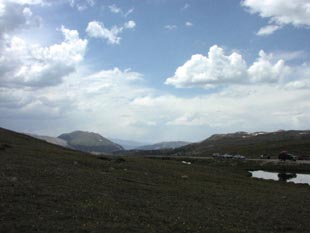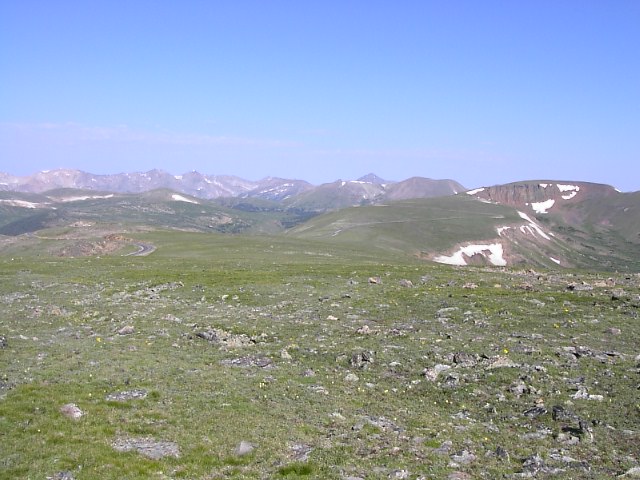 そして前回は雪で閉鎖されていた道路を進みます。Trail Ridge Roadです。完全に森林限界点よりも上。 |