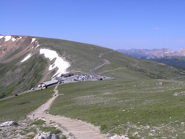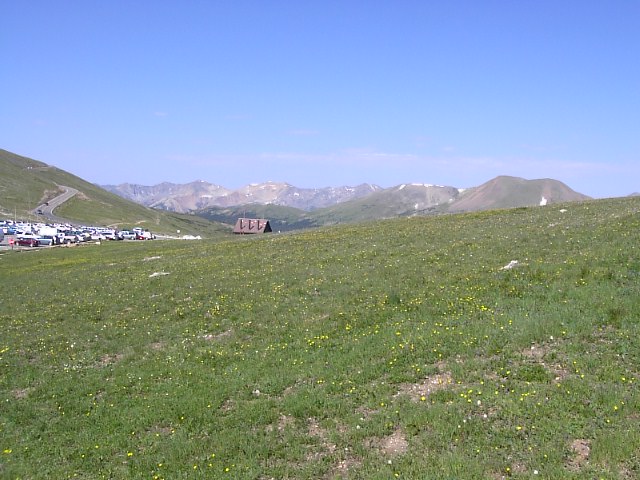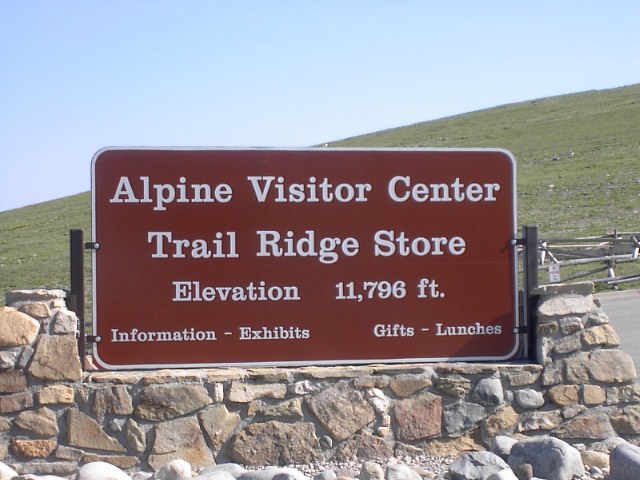 そして、このTrail Ridge Roadの中で一番高い場所のすぐ傍に観光案内所兼お土産売店がありました。3600mくらいの高度です。ここまで車でこれるんだ... |
