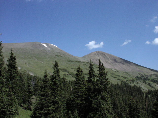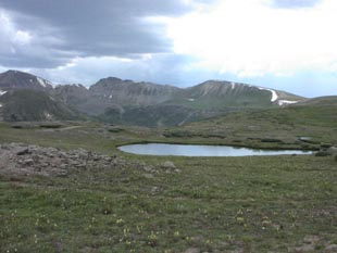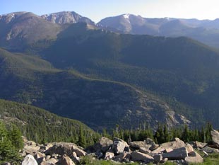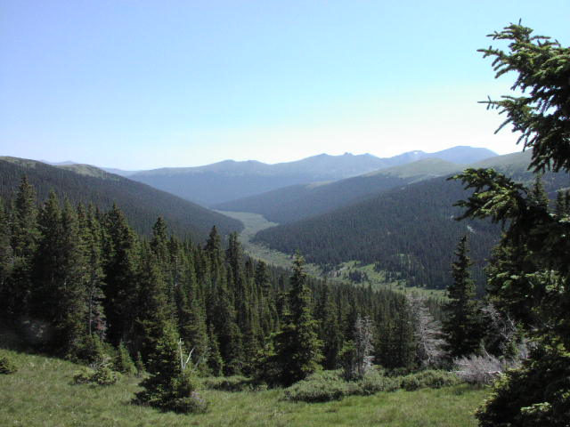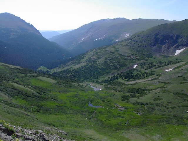 ロッキー、大陸の背骨をとうとう通りすぎました。だんだんと今度は下って行きます。少し針葉樹が生えてきました。 |