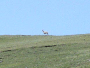 いました、いました。ビッグホーン・シープ。望遠鏡でようやくわかる程度。写真ではカメラの性能が追いつきません。なんでまた、こんな険しい場所で生活するのか... 野生の姿にちょっと感動。 |