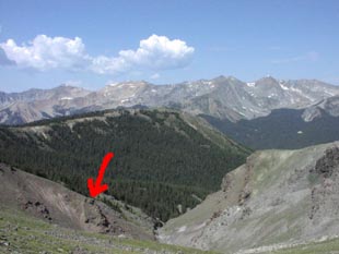 Centerを結ぶライン(トレイルのあるとこ)、この尾根は北アメリカ大陸の大陸分水嶺です。この尾根の左側はコロラド川となって太平洋側に、右側はミシシッピ川となってメキシコ湾、大西洋側に流れていきます。この分水嶺両側の水はちょっとした距離なのに永遠に別々の運命をたどることになるのです。 |