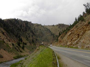 コロラド川は山を削ってくれていますのでその脇に道路が作りやすいのでしょう。コロラド川源流沿いにドライブルートが延々と続いてました。 |