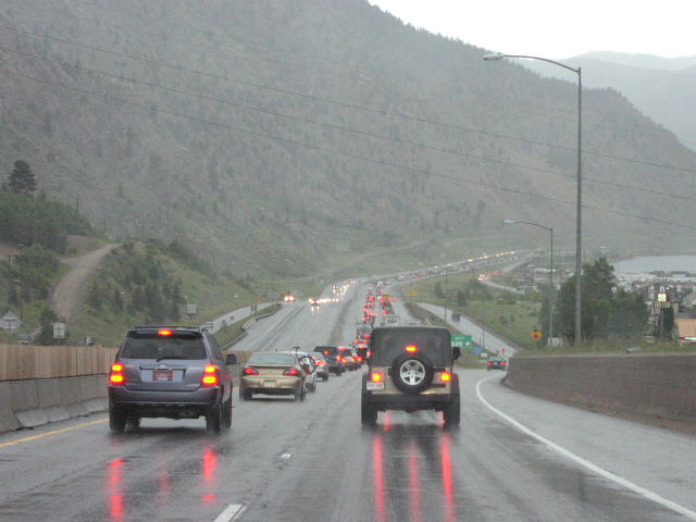 でも、ロッキーは山。山の天気は変わりやすい。途中、雨で事故ったのでしょう、10キロ以上の渋滞に会いながら |
