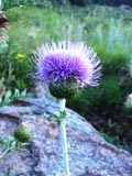 このあたり、広大な写真を撮るとわかりにくいですが沢山の花が咲いてました。気温は15度くらい、7月末ですが小春日和なのです。 |