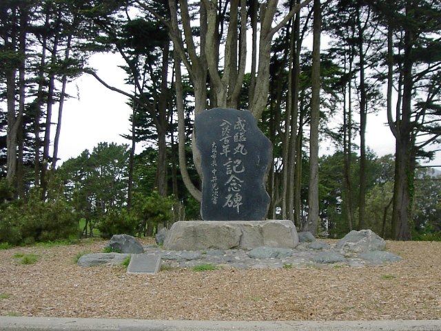 近くにはこんな石碑があります。勝海舟がこの場所に船をつけたんですね。彼はアメリカの政治、経済のシステムをここで学んで、そのことは後に日本の明治維新につながったのです。 |