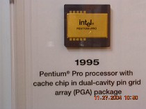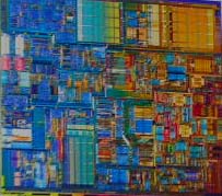 そのCPUのひとつを顕微鏡でズームアップして見てみましょう。その微細さたるや、まさに、脅威の世界でした。 |