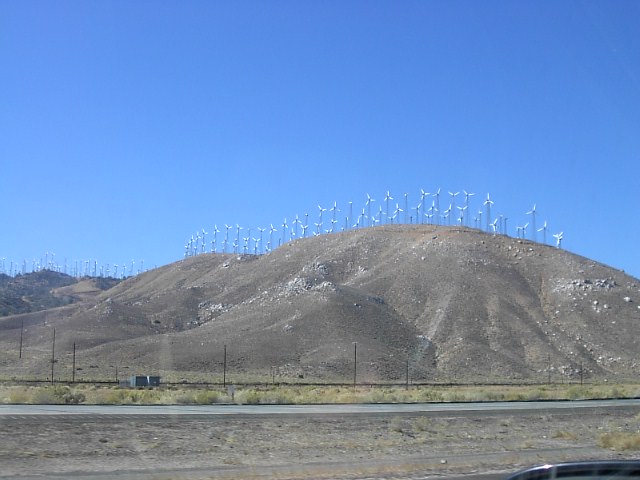 途中の山には無数の風力発電の風車がありました。 |