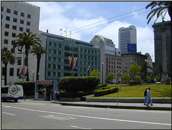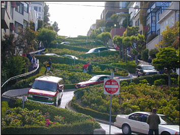 ちなみに、サンフランシスコの町並みの典型はこんな感じです。町全体がこの手の建築様式で統一されています。白い外壁、六角形の構造、屋根は薄い茶色。こんなとこですね。これがサンフランシスコの丘という丘を覆っています。 |