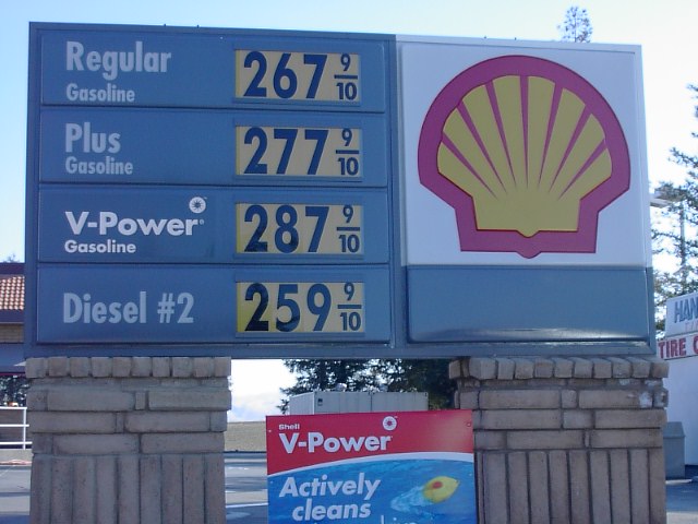 あ、ひとつ思い出しましたが、2004年、石油がとても高価です。1ガロン(3リットルくらい)がこのとおりです。この値段は自分が全米で見た中で最も高い値段でした。やがて3ドルいくのではないでしょうか?カリフォルニアは人が密集し、そのことが物価上昇に直結してるんです。