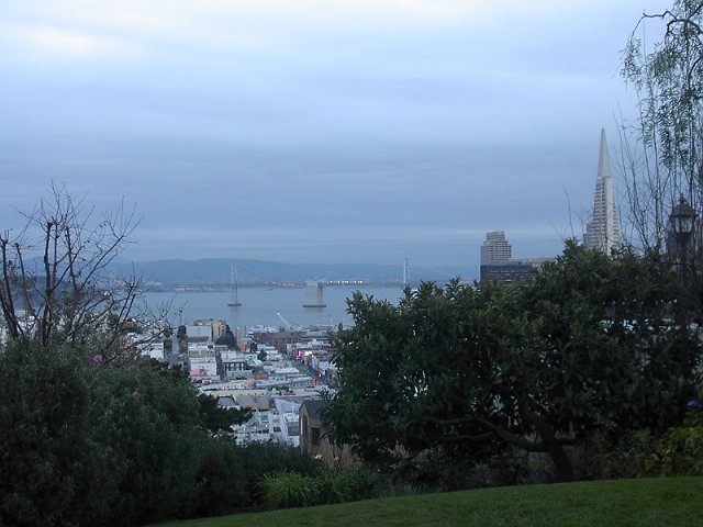 頂上につくと、眼下にはサンフランシスコの町並みが自然と溶け込んだ姿で広大に広がっていました。 |
