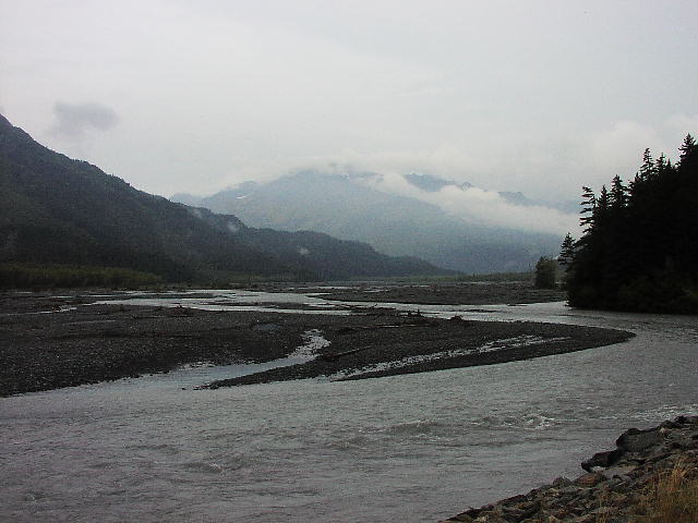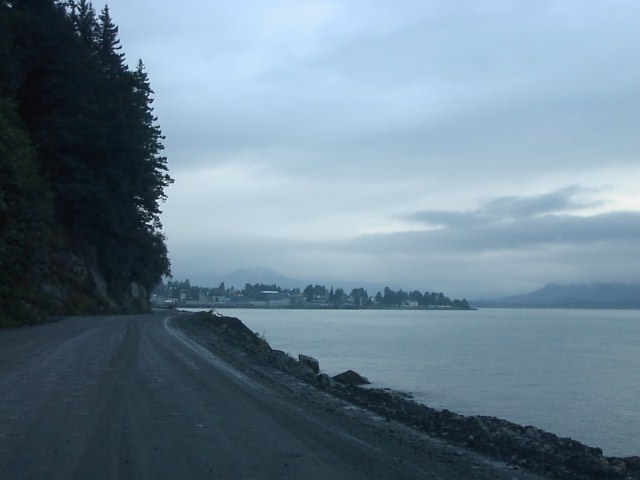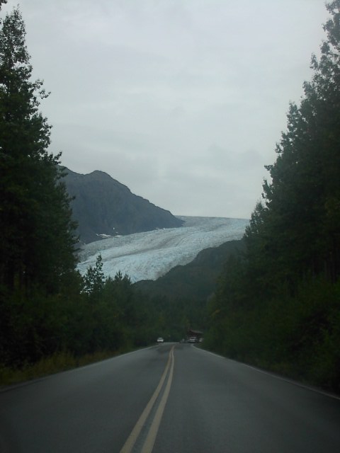 Highwayは絶対に運転すべきです。左手に急峻な山、右手に海、それを取り巻く半島にはこれでもか、というほど氷河があります。キナイ半島は本当に美しい場所です。あまりにもいい景色なので天気の悪いこの日も、それなりの写真に残りました。 |