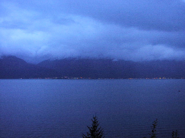 『沖合いは嵐か?笑 船揺れるだろうなぁ...ま、仕方ない。アラスカまで来ておいてサーモン釣らなきゃ何しに来たか分からんやろう。』 |