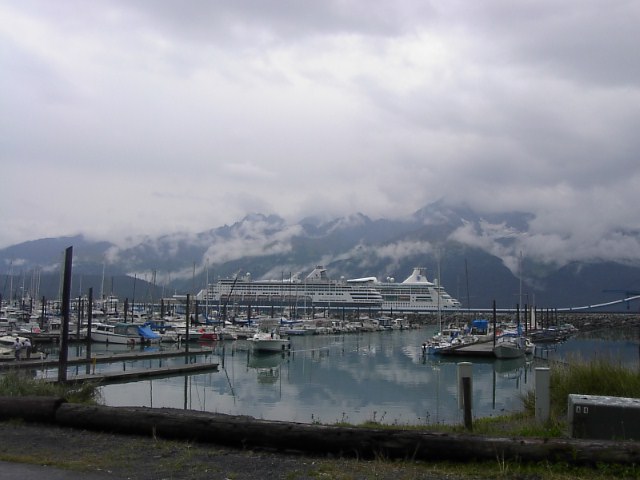 更にちょっとだけ運転するとそこには海と山に囲まれた町、Sewardです。本来、漁港、ですがキナイフィヨルド他、多数の氷河を見るための豪華客船の港にもなっています。 |