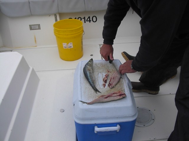 我らが船長さんは釣ってきたサーモンをあっという間に開いて切り身にしてしまいました。勿体無いことにイクラなんかは気にもかけずに