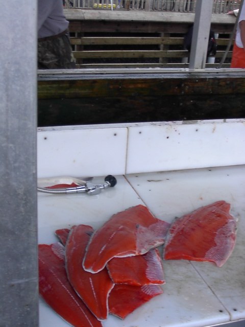 このくらいデッカいハリバット見れば、サーモンなんか完全に雑魚