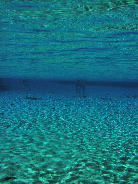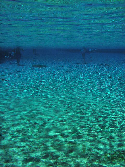 Magnitude 1の泉は結構数潜ってきましたが、ここはその何処よりも美しい... 朝一番に潜りに来たから人の泳ぎで汚される前の景色を目にできた事も大きかったでしょう。足元が白い砂である為に余計に綺麗に見えるんです。そしてここは足元が砂で結構浅い場所が広く広がっていますから、子供に向くと思います。 |