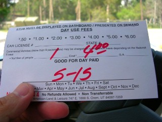 ここでは入場料支払った証明に手に結びつけるリストバンドもらって中に入って行きます。料金所の奥にそれをチェックする売店があるのです。実際には何もチェックしてない風な感じですけどね。 |