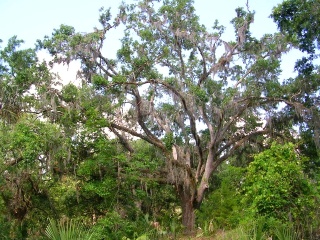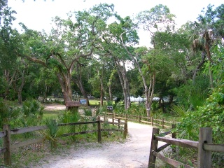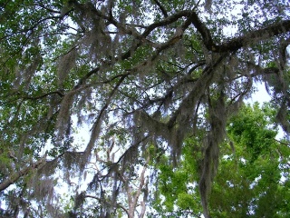 駐車場に車を停めて中に入って行きますが、ココに生えている木々はフロリダらしい雰囲気に満ちてます。木々に髭が生えたような雰囲気しているんです。この髭のような代物、スパニッシュ・モス、苔なんですね。夏場ほぼ毎日のようにスコールの雨、日本で言う夕立が降りますから、その豊かな降水量のためにこういった独特の生態系が育まれてきたのでしょう。 |