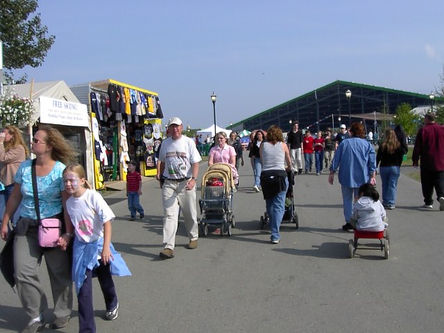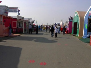 Fairは午前10時から。ゲート前には物凄い長蛇の列ができてました。結構、メジャーなお祭りみたいです。右手の鉄格子の中が、Fairの敷地、左手には広大な駐車場があります。 |
