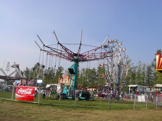 話がそれました。えー、Akaska State Fairの話でしたね。一連の屋台を通り過ぎると遊園地コーナーとかも作ってありましたよ。 |