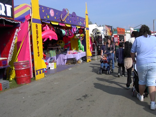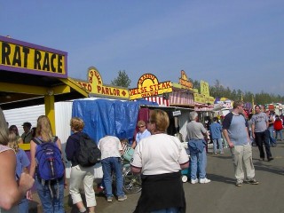 ちなみに、これは全て仮設もの。Fairが終わったらこれらのものアラスカの何処にしまっておくつもりなんでしょうかねぇ?アラスカには遊園地的な場所はココしかありませんから子供達は大喜び、結構賑わってました。 |