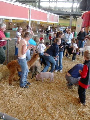 屋内には沢山の動物達がいました。子供のヤギや牛、豚。アメリカではシバシバ見かける家畜たちですが。 |