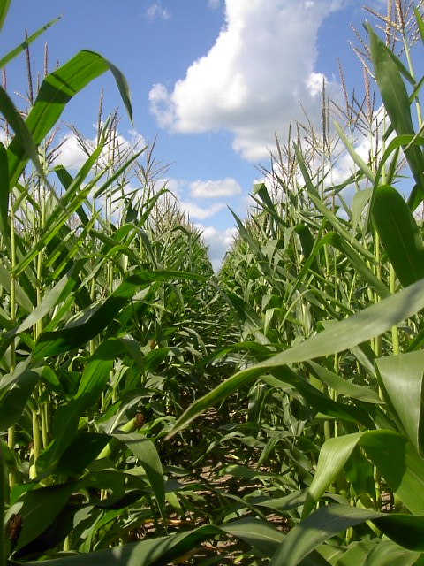 (一面トウモロコシ畑。この写真は我がIowaの8月です) |