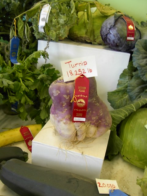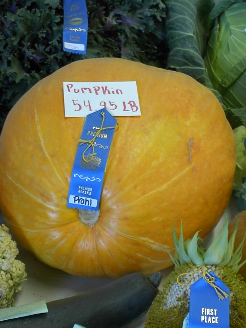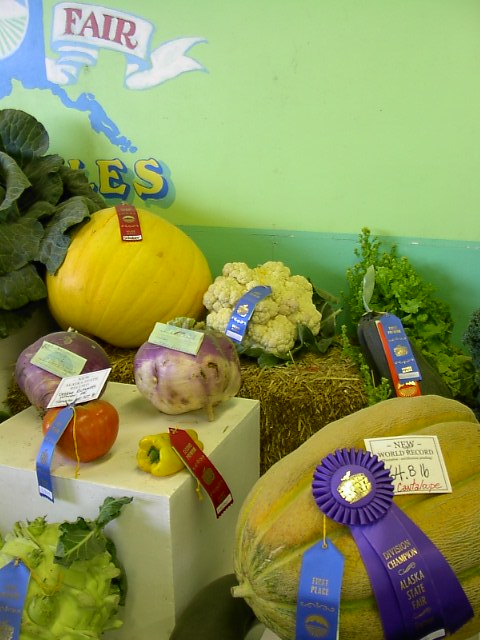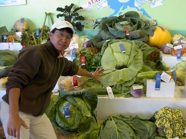 この屋内会場でももっともメインとされているのはこれです。ここ、アラスカのマタヌスカ農業地帯で収穫された野菜を紹介するコーナーです。
