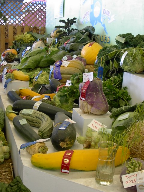 が、Alaska State FairがAlaska State Fairたる所以は会場敷地の最奥地にある大きな緑色の建物(写真の奥の奴)にありました。そこに行ってみるといろんなものがありました。 |