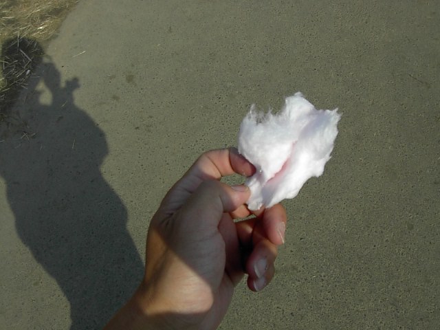 やめておけばよかった。甘すぎる。砂糖の塊ですから当たり前といえば当たり前でしょうか。ちなみに赤や黄色、いろんな色の綿菓子がありましたが、青い綿菓子もありました。青は駄目じゃろ。 |