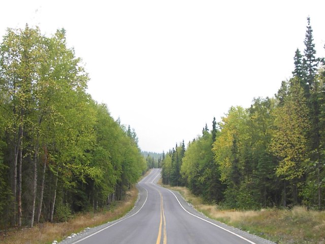 アンカレジを少し離れるとそこはまさにWildernessの世界でした。道路こそありますが本当にそれだけの世界。アラスカに到着したその時期、丁度、この場所での紅葉が始まったばかりの時期でした。この場所の紅葉は赤色ではなくて黄色がその中心となる色です。 |