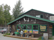 (余談ですが、マネージャーさんは、この日の日本からのツアー客が予約を直前にキャンセルしてきたのでおこってました。煙でタルキートナからのマッキンリー観光は厳しいと見て代理店担当者がそういってきたのだそうで、勘弁してくれとしきりに言っていました。ま、それでも、ほぼ毎日このLatitude62には日本人の方が泊まりに来るそうで植村さん様さま、といったとこなのかもしれません。) |