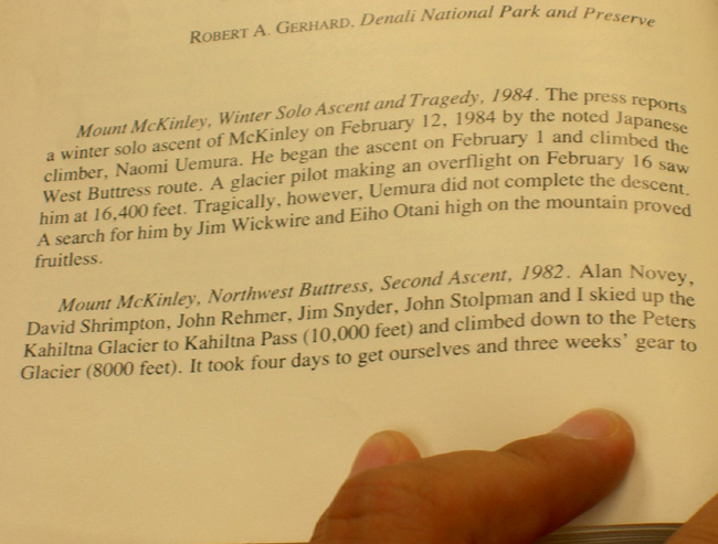 Naomi Uemuraが1984年に世界で初めて冬季に単独登頂を果たしたことがきちんと記述されているではありませんか!歴史と言うのはこういう形にならない限り誰もが認める形では残らない物でしょうが植村さんの名前は確固として、こうして学術的にも残っていた訳です。 |