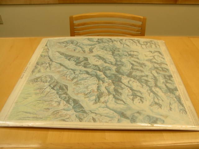 地図は実に詳しくマッキンリーの無数の氷河、尾根から、山裾に至るまで手に取るようにかかれたものです。これはマッキンリーに挑む全ての人が作戦会議を開き、National